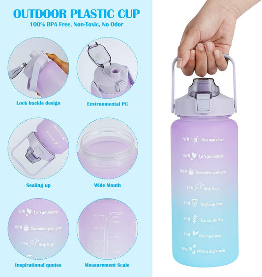3pcs Water Bottle with Straw 2 Liter Water Bottle and Portable Bottle BPA Free Titan Drinks Bottle Leakproof