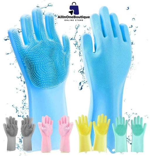 Silicone Reusable Magic Gloves with scrubber for Wash Dish, Car Washing, Kitchen, Bathroom Multipurpose Usage (Pack of 2)